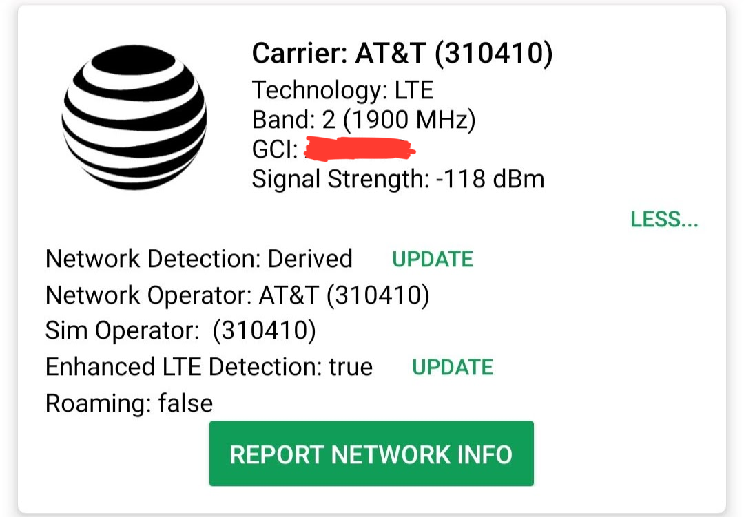 Yous may likewise wonder what the "GCI" number in the list is - it's essentially the identifier for the cellular tower you're currently continued to. It doesn't really tell yous much on its own, simply could help if you were doing some advanced troubleshooting with your carrier, I suppose.